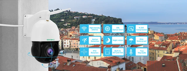 Esta câmera PTZ de segurança de foco automático microfone e alto-falante avançados integrados e com tecnologia anti-ruído para uma comunicação de voz clara entre o aplicativo e a câmera. Você pode se comunicar com os visitantes quando você não está em casa e afugentar os intrusos. A câmera PTZ ao ar livre permite o acesso remoto pelo aplicativo CamHi/CamHipro, HiP2P PC Client. Você pode monitorar sua casa a qualquer hora e em qualquer lugar para proteger sua propriedade e família!