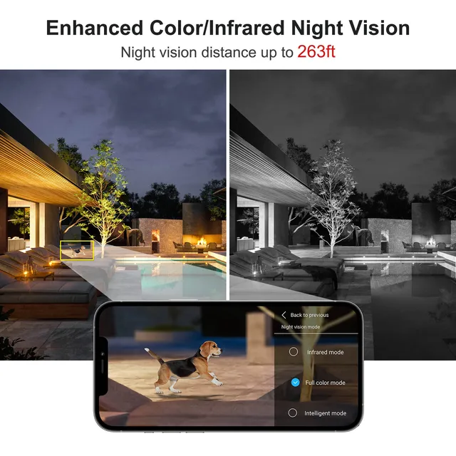 6pcs LEDs infravermelhos permitem longa distância de visão noturna (até 263ft). A câmera captura evidências de vídeo cristalinas de roubo e vandalismo que ocorrem em condições de pouca luz. Segurança para monitorar sua casa.